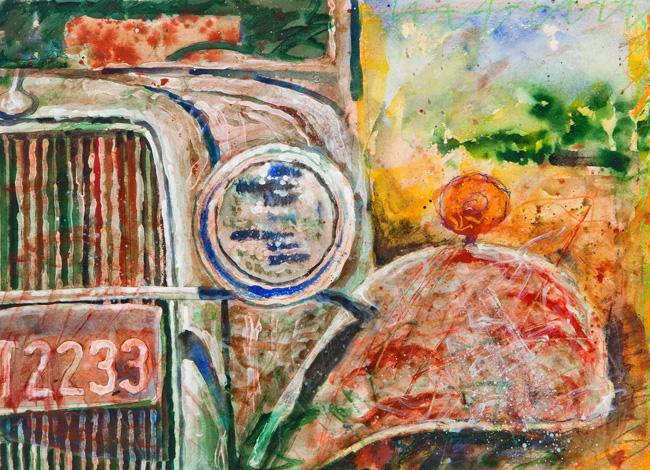 Green Rusty Car - Lee Vining, CA 1971 | 22x30 mixed-media | 107.14.6 | Donated by the artist |