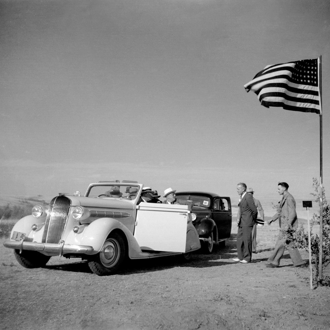 Roosevelt greeted on tour of drought area Near Bismarck, ND | 1936 archival pigment | 154.14.12 | From Library of Congress |