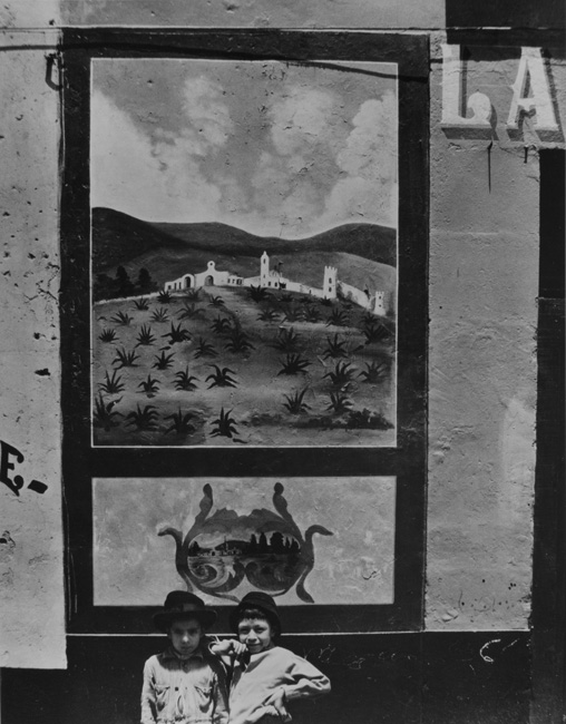 Two boys with Pulqueria Mural, Mexico City | silver gelatin print | 493.16.10 | Donated by Helen C Harrison |