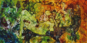 Also featured in the exhibition is Ebin's expat Swedish friend Agneta Svanberg Sjofors, who has been traveling with her on this mystical journey for almost a decade. Sjofors, who previously had a career in realistic oil painting, has eagerly delved into the unknown processes that Ebin demonstrates, finding freedom to explore the depth and inner workings of her heart and soul.