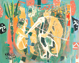 spending a year in Paris, immersing himself in painting and connecting with fellow French Art, nevertheless, continued to play a pivotal role in shaping his future. Our property became a temporary residence for a German tank group, and amidst the tumult, one of the soldiers expressed a desire to acquire one of my father’s paintings. In an act of generosity and preservation, my dad carefully removed the painting from its frame, rolled it up, and presented it to the soldier. The looming threat of Russian bombings cast uncertainty over our home and all his artworks, adding urgency to our escape. With time running out, the soldier who had received the painting came to our aid. He helped us board a train destined for soldiers, ensuring our passage to safety. Grateful for the assistance, the soldier shared an address of a family member in Austria, which became our beacon of hope. Armed with this crucial information, we journeyed to Austria, avoiding the fate of refugee camps in Germany, and eventually discovered a new home nestled in a quaint village amidst the Austrian Alps. In this picturesque setting, my father’s artistic direction took a remarkable shift. He became captivated by the metal holy pictures adorning crossroads across the countryside. These rustic depictions, weathered and adorned with rust, held a unique charm that spoke to his soul. Symbolizing guidance and spirituality for travelers, they inspired my father’s artistic expression. |