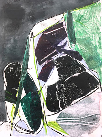 The world is collage to Jackie Leishman. Even when she was mainly working with photography, she was always trying to build more layers, attempting to break the physical picture plane. That need to see what happens in the fractures and meeting places pushed her further away from the photograph and more into an in-between space, a space that collage claims. She pulls from drawing, painting, photography, and printmaking to explore that in-between space, a space that is felt. A space that is both/and. Feeling breaks against what is seen. The seen and the unseen are sometimes at odds and sometimes not. The still life, landscape, or figure is the way in. It holds the form through which she works with and against. The subjects were not the end goal but a beginning place.