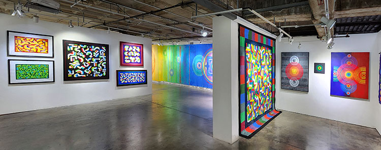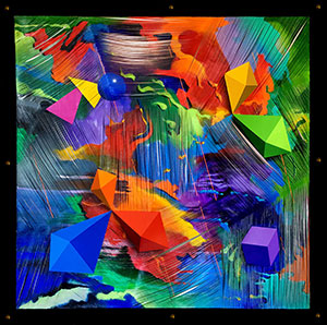 Mind Tapestries invites viewers on a mesmerizing journey through the realm of non-objective art, weaving together diverse techniques and visual compositions that explore the multifaceted nature of color. At the heart of this exhibition lies Grasso's innovative approach to "asemic" writing and mandala compositions, creating intricate patterns that captivate the eye and stimulate the mind The exhibition showcases a series of 3D paintings that push the boundaries of traditional art viewing. When observed through provided 3D glasses, these works transform, revealing new dimensions and depths that challenge our perception of space and form Grasso's exploration of canvas deconstruction adds a sculptural element to the show. Hand-cut canvases create hanging structures that blur the line between painting and wall sculpture, inviting viewers to engage with the artworks from multiple angles "The Language of No-Thought" series within the exhibition embraces an Alla Prima approach, featuring bold and colorful writing that captures the spontaneity and energy of unfiltered creativity This technique allows Grasso to translate raw emotion and intuition directly onto the canvas, resulting in vibrant, expressive compositions.Through these varied approaches, "Mind Tapestries" offers a rich tapestry of visual experiences, encouraging viewers to explore the interplay of color, form, and dimension. Grasso's work challenges traditional notions of art-making and invites us to see beyond the surface, into the depths of our own perceptions and imaginations. |